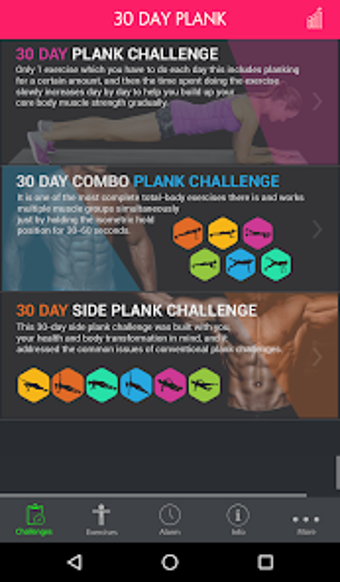 De 30 Day Plank Challenge is een gebruiksvriendelijke app die gebruikers helpt hun core-spieren te versterken door een gestructureerd 30 dagen durend plankoefenprogramma. Elke dag moeten gebruikers een bepaalde tijd in de plankpositie doorbrengen, waarbij de intensiteit geleidelijk toeneemt. De app biedt begeleidende teksten en video's voor de oefeningen, en gebruikers kunnen hun voortgang eenvoudig exporteren en importeren. Daarnaast zijn er recepten voor fitness, en de mogelijkheid om rustdagen te markeren en workouts te plannen.
